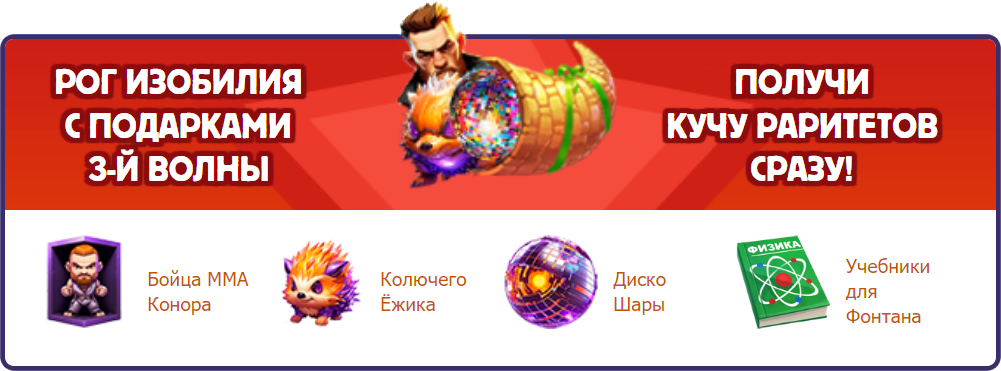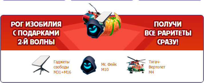 Рог изобилия — это предмет, который содержит в себе все раритеты текущей волны подарков сразу в максимальной модификации и является желанным призом для любого игрока!