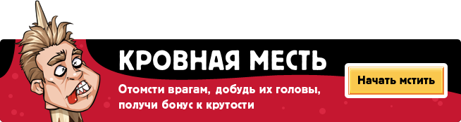 Столичная мэрия решила поощрить тех, кто участвует в самых жарких боях в Нерезиновой, мстя своим обидчикам! Теперь за победу в дуэли или групповом бою Кровной Мести в награду полагается элемент коллекции Страшного Отряда!