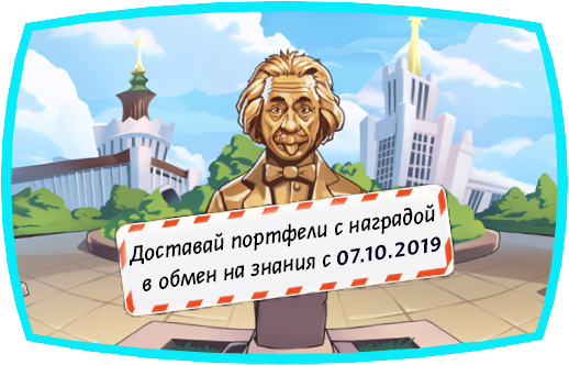 Часть крутых раритетов каким-то образом оказалась в портфелях школьников, которые они побросали около бюста Эйнштейна! Находи в подарках учебники по физике, которые позволят вам подойти к статуе учёного и попытаться вытащить портфель с клёвым призом!