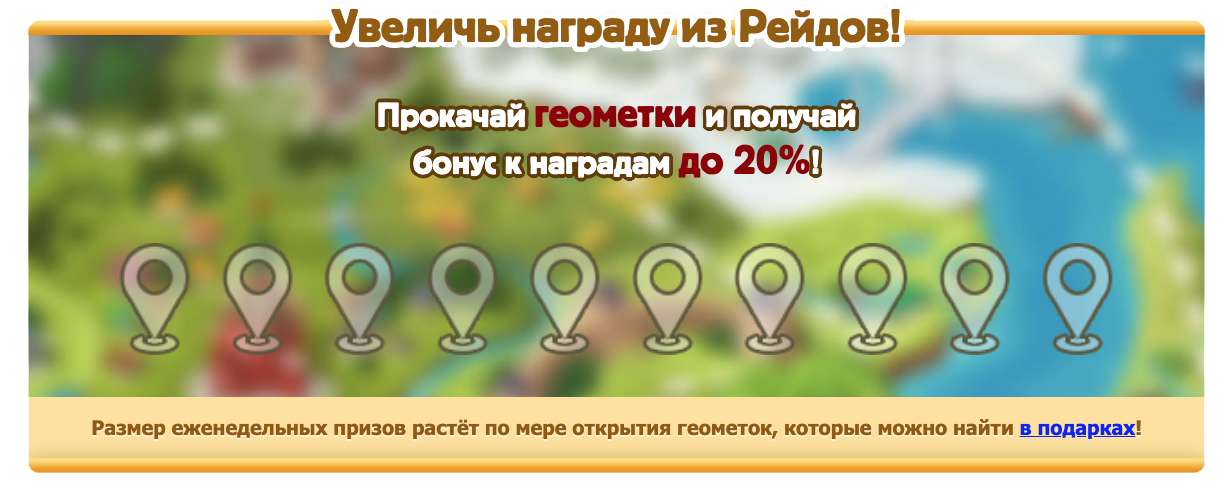 Достань из березки10 геометок, чтобы значительно увеличить награду в Еженедельных Рейдах! Увеличь еженедельную награду в патриотизме и супер-характеристиках на 20%, и даже начни получать долги!