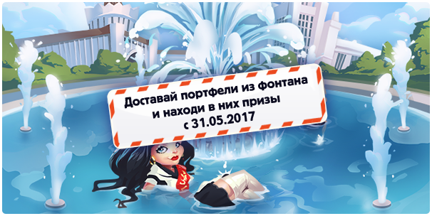 Часть крутых раритетов каким-то образом оказалась в портфелях бывших школьников, которые они побросали в городской фонтан! Находи в подарках аттестаты, которые позволят вам подойти к фонтану и попытаться вытащить портфель с клёвым призом!
